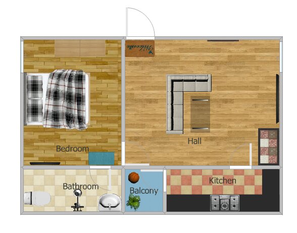 1 Bedroom + 1 Hall + 1 Kitchen + Balcony + 1 Toilet/Bathroom .